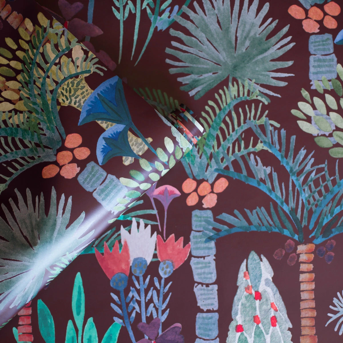 Phoenix is a genus of 14 species of palm trees that span the world from Africa, Asia, Europe, and the Middle East. While sitting outside at a local café near her home along the LA river, Justina spotted many varieties of palms which inspired this original artwork. Our Phoenix wallpaper represents the connection and diversity between plants and people all over the world.