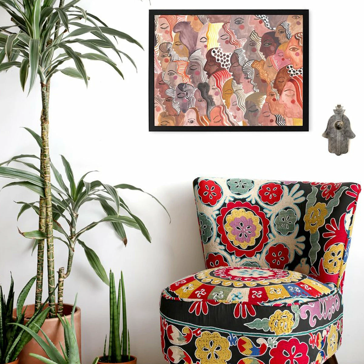 Justina Blakeney is an artist, designer, and founder of Jungalow®. She employs watercolor, gouache, collage, and pen on paper to create her artworks and explores themes of identity and togetherness.