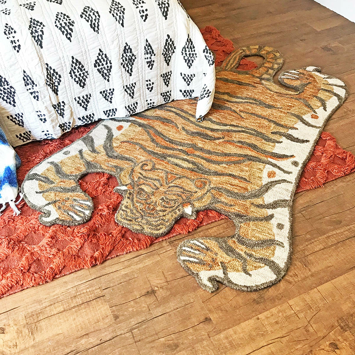 Decorate wild with the Feroz Collection, designed by Justina Blakeney for Loloi.Inspired by the classic Tibetan tiger rug and hooked of 100% wool by artisans in India, this contemporary faux-tiger series makes for a true conversation piece in any space.