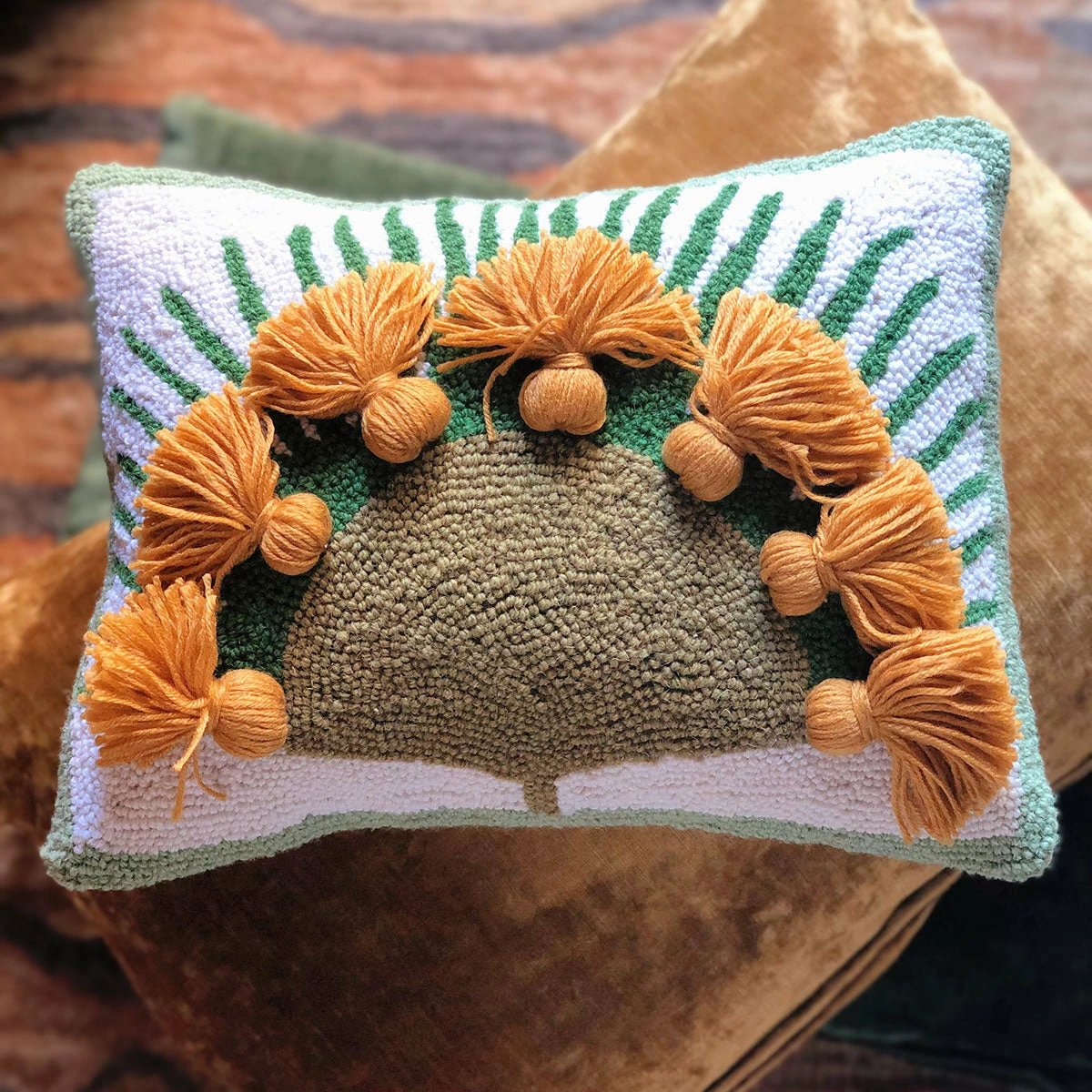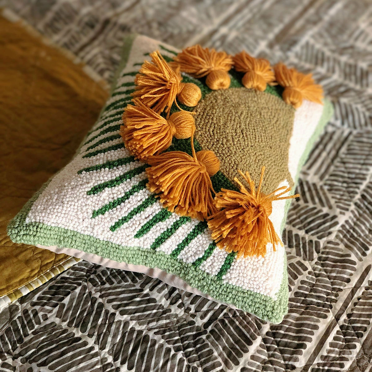 Designed by Justina Blakeney®, the Nilo Hook pillow design is a playful take on the fan palm. We’re obsessed with all things tassel-ly around here and the Nilo pillow will give you a good tassel fix!