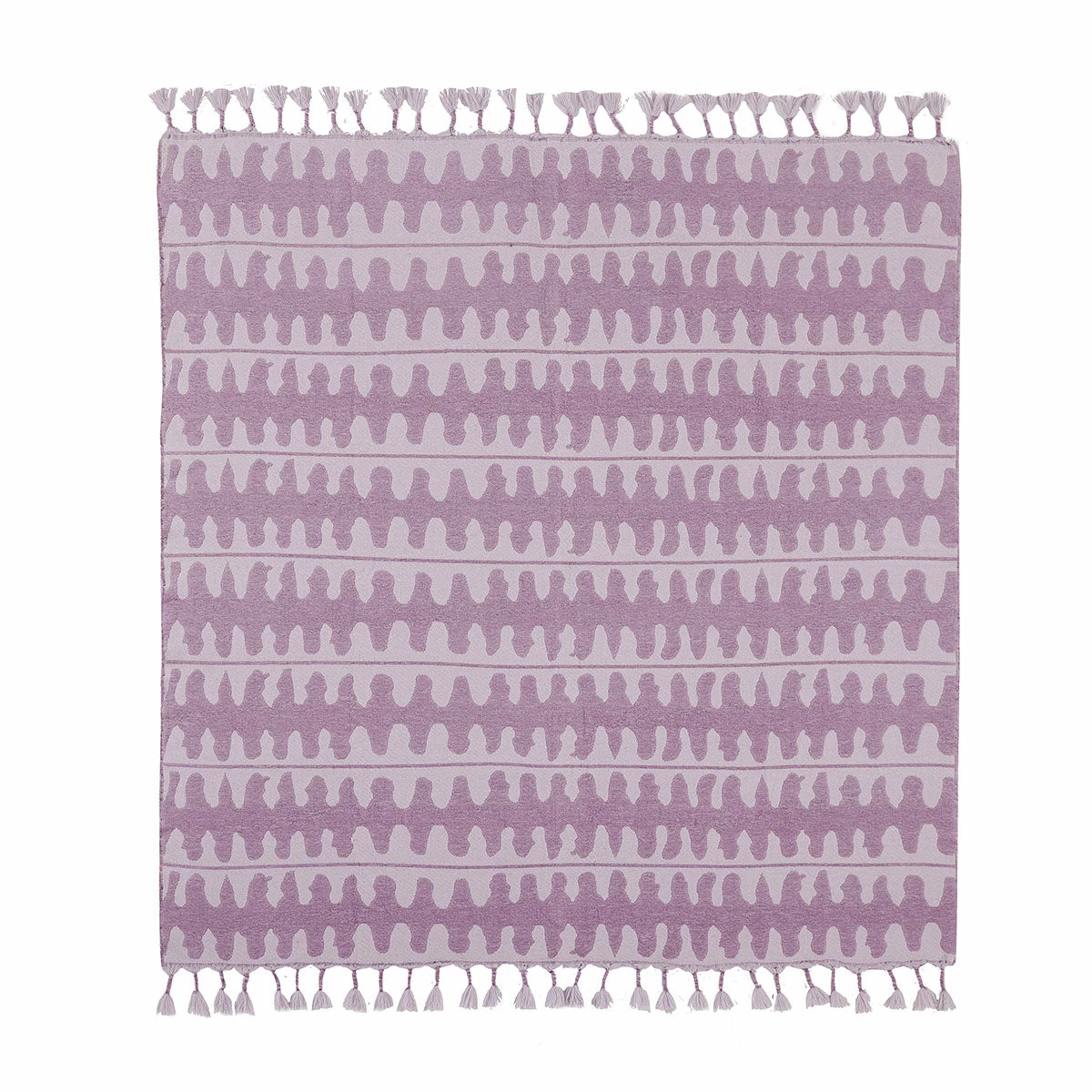 The organic, wavy-lined design features original artwork by Justina Blakeney. Unique tassels line the top & bottom while “unfinished” edges add a festive look and feel to the sides.